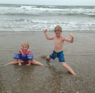 I tried to get a picture but wasn't fast enough and Caleb caught me as he was pulling his bathing suit up! I was hoping to get a picture of their naked butts!